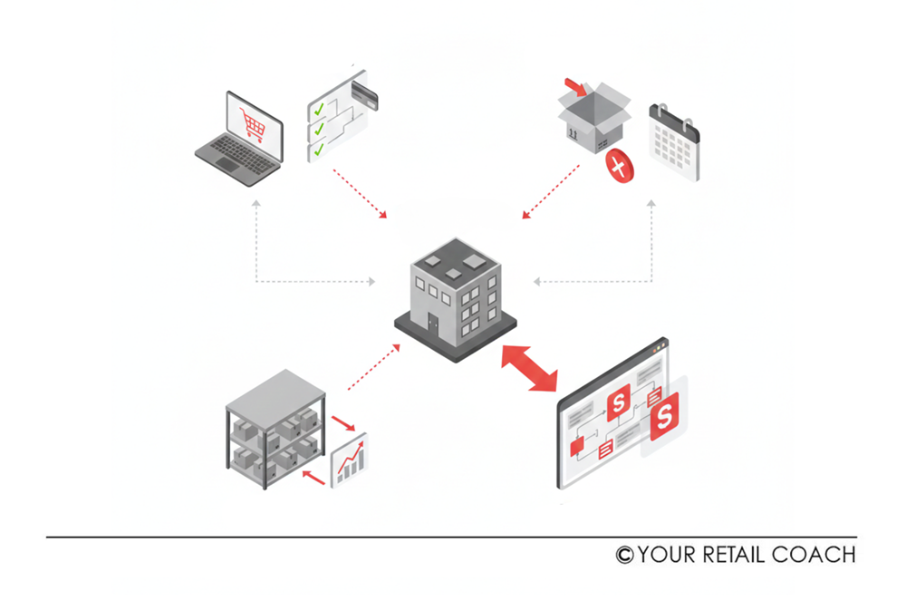 - Returns integration: standard operating procedures (SOPs) for inventory restocking of returned items, grading conditions, then tracking how many items remain for sale.